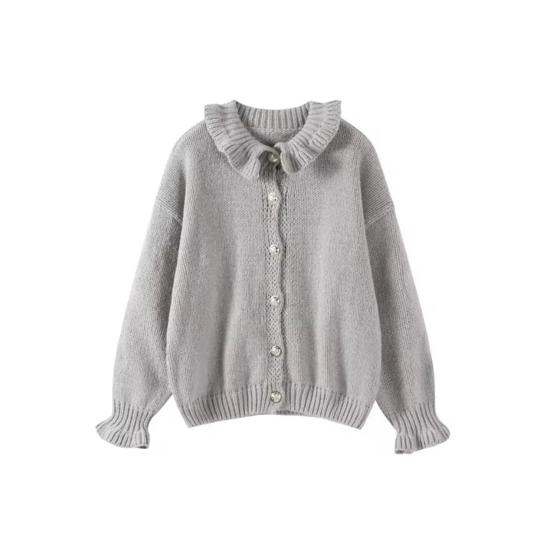 Rüschen-Strick-Cardigan – Femininer Chic mit elegantem Twist
